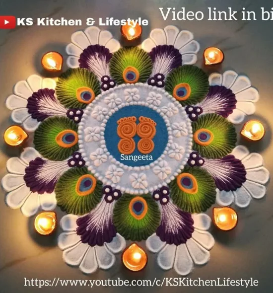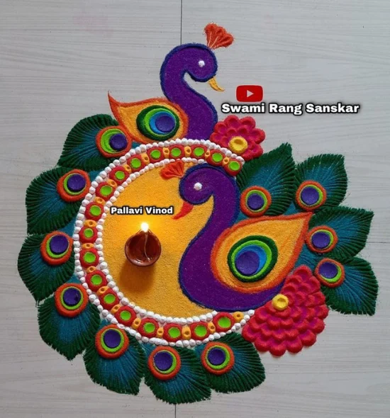 8- Peacock Rangoli Design: