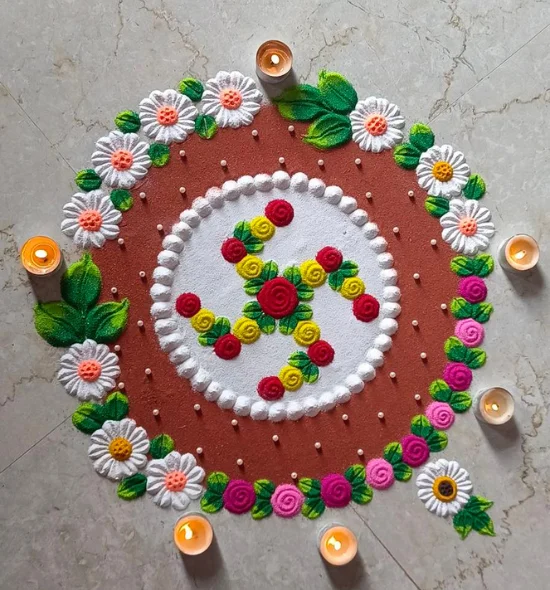3- Rangoli Design With Flowers: