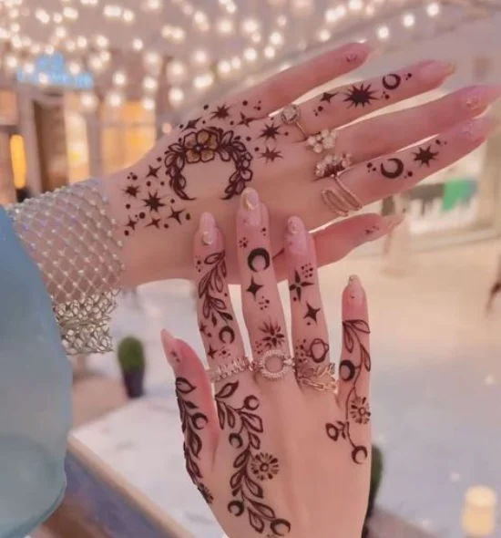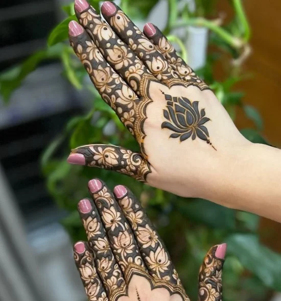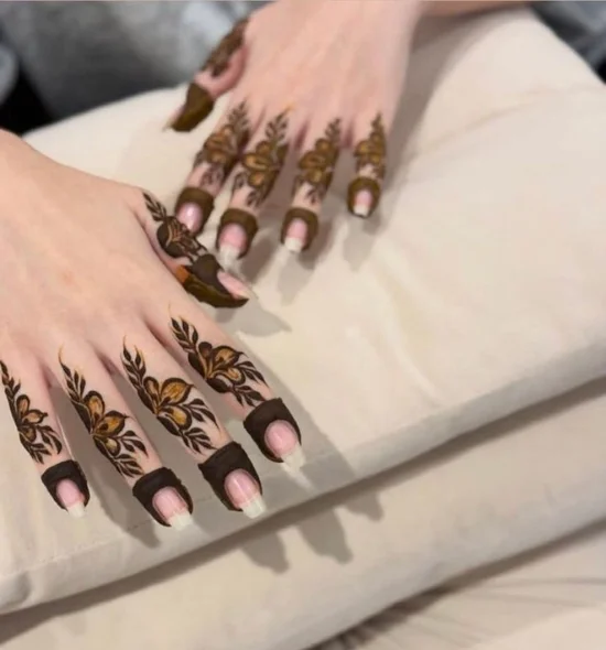 Finger mehndi is smaller, easier to apply, and particularly sparse than full-hand or bridal mehndi. It is intended to be used to draw attention to hand motions, jewelry, and nails without requiring a lot of time or space for elaborate designs.