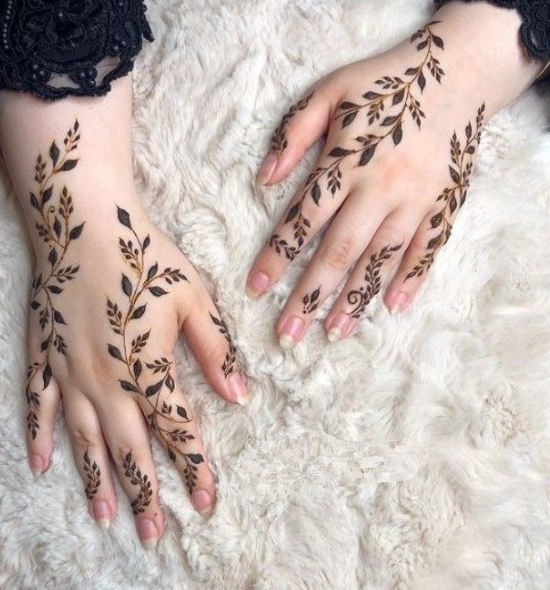 This elegant mehndi design is ideal for girls’ simple mehndi designs, children’s mehndi designs, and even full-hand Eid mehndi patterns since it contains delicate leaf trails across the back hand and fingers. The Latest Mehndi Designs for Eid, Eid Mehndi Designs 2025, New Mehndi Designs for Eid, and Arabic Mehndi Designs for Eid are all perfect fits for this latest Mehndi design trend. A beautiful option for those searching for easy Eid Mehndi patterns!